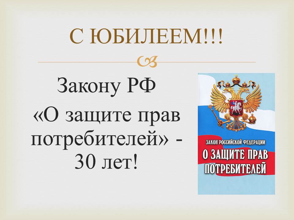 Закону Российской Федерации «О защите прав потребителей» исполняется 30 лет!