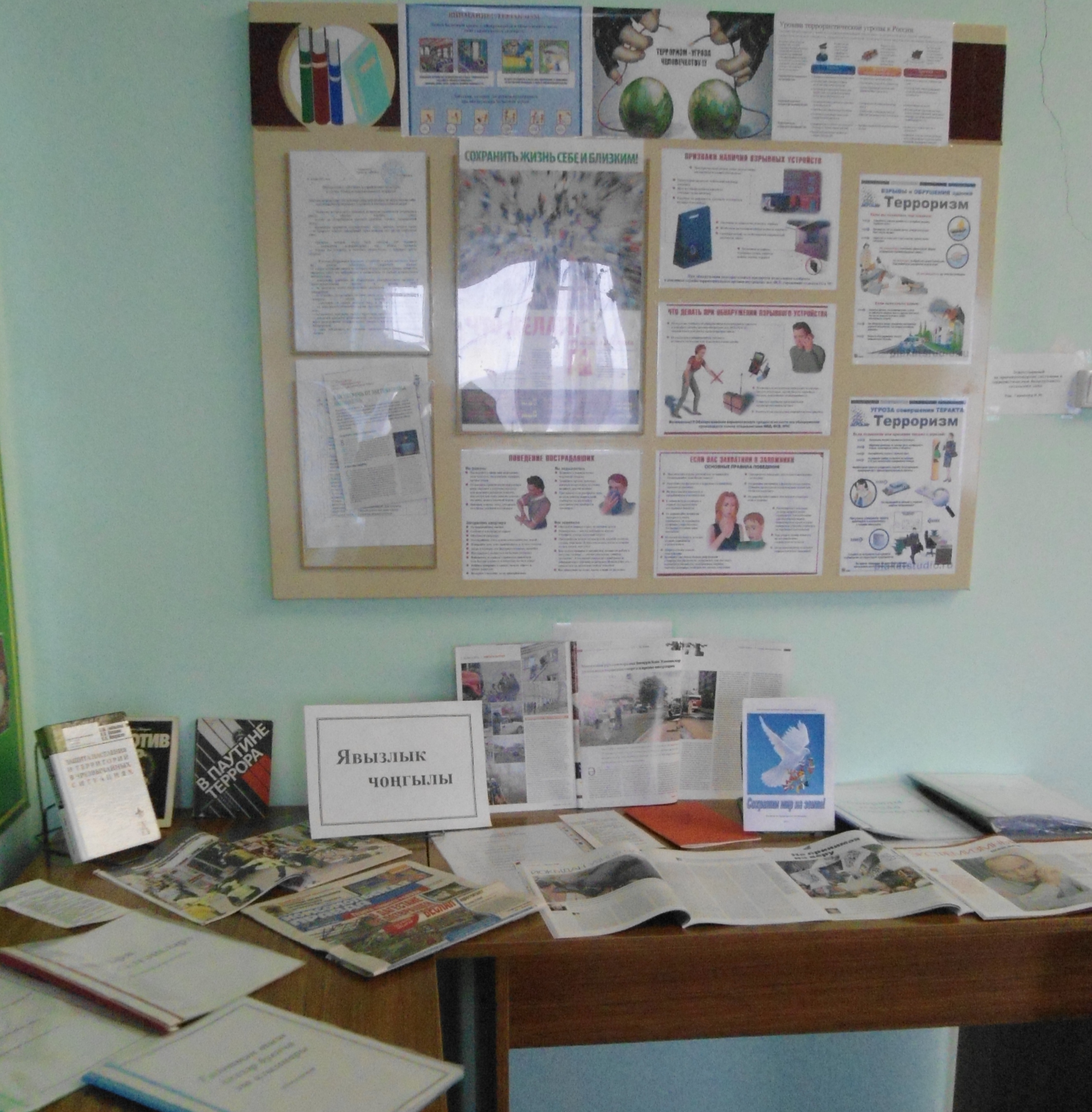 Соңгы елларда тормышыбызга яман күренешләр, чит агымнар үтеп керде. "Терроризм" һәм "экстремизм" дигән төшенчәләр хәзерге тормышның иң куркыныч һәм фаразлап булмый торган күренешләреннән санала. Әлеге афәтләрне кисәтү, халыкка аларның асылын аңлату максатыннан, Үзәк китапханәнең уку залында "Явызлык чоңгылы" дигән исем астында көндәлек матбугат материаллары, методик ярдәмлекләр, китаплар тупланган тематик почмак эшли. Уку залына рәхим итегез!
