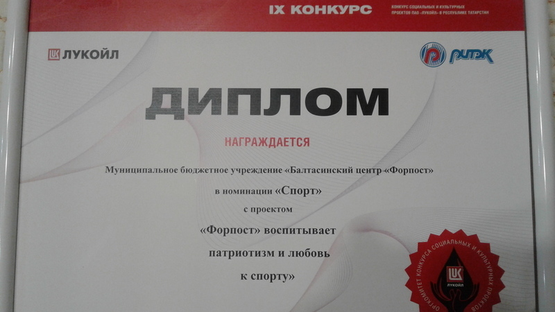 В 2018 году директор МБУ «Балтасинский центр «Форпост» Гилемзянов Ф.Ш. участвовал в конкурсе социальных и культурных проектов ПАО «РИТЭК» и Некоммерческой организации «Благотворительный фонд «ЛУКОЙЛ» в Республике Татарстан.