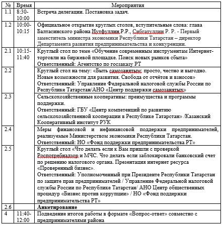 Приглашаем Вас 14 августа 2019 года на круглый стол с участием главы района Нутфуллина Р.Р., а также принимают участие: Уполномоченный при Президенте Республики Татарстан по защите прав предпринимателей, Управление Федеральной налоговой службы России по Республике Татарстан, АНО Центр общественных процедур «Бизнес против коррупции», НО «Фонд поддержки предпринимательства РТ», АНО «Центр поддержки самозанятых», ГБУ «Центр компетенций по развитию сельскохозяйственной кооперации в Республике Татарстан» /Казанский Кооперативный институт РУК.