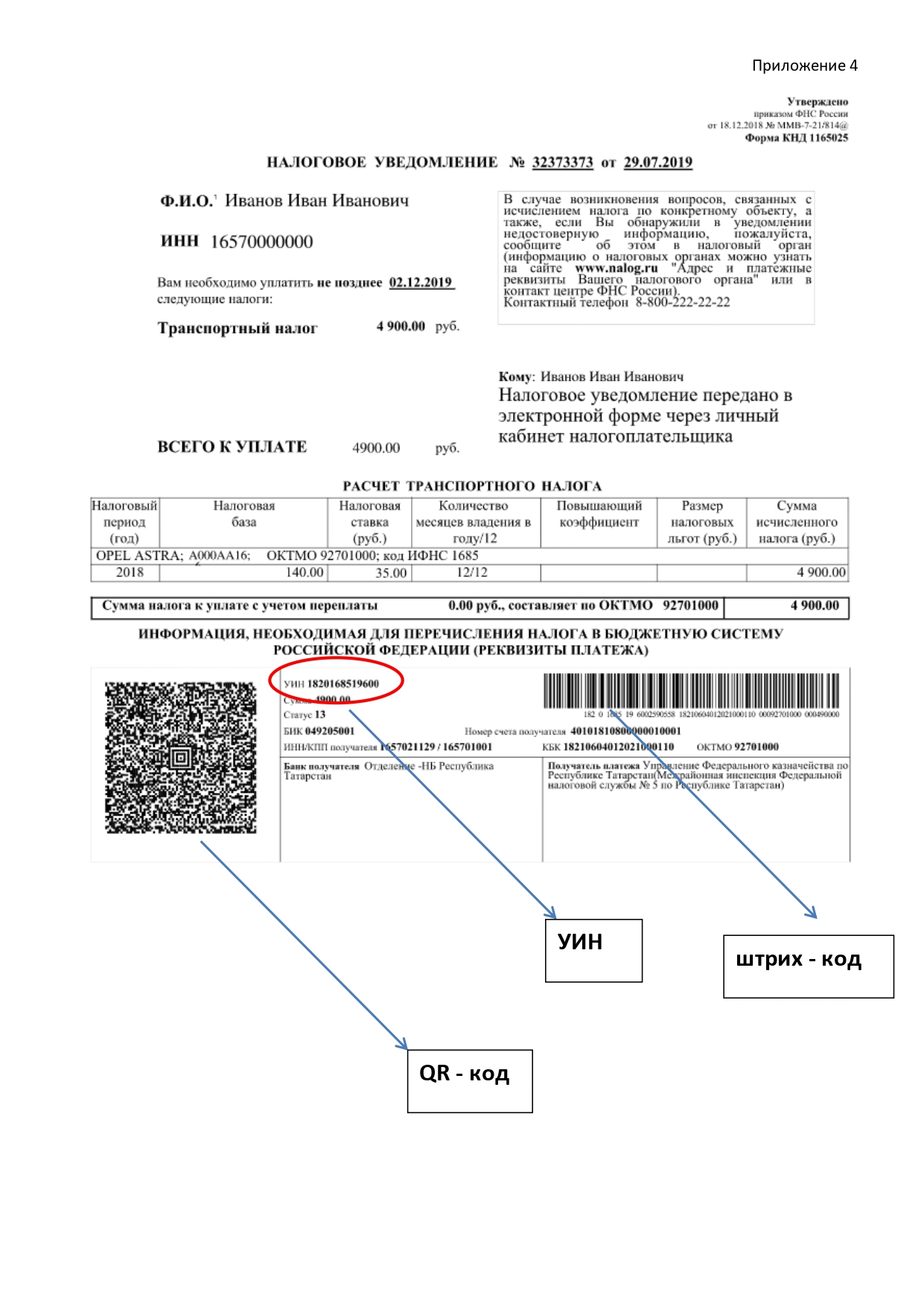 - через банковские платежные терминалы или мобильные приложения банков, отсканировав Qr-код или штрих-код, указанные в налоговом уведомлении или введя УИН;