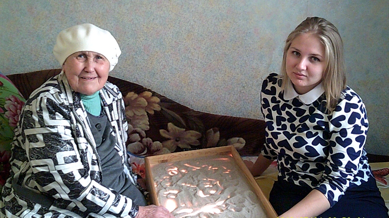 После занятия пескотерапии, проведенного психологом Анной Михайловой, Идея Николаевна отметила, что «исчезло» внутреннее беспокойство, а беседа с психологом придало чувство уверенности и оптимизма. В свою очередь, заведующий отделением надомного социального обслуживания Аниса Хайруллина выяснила удовлетворенность условиями проживания и уходом, наличие/отсутствие проблем и предложений со стороны пожилого человека. Идея Жилина выразила полное удовлетворение с условиями проживания в данной семье и отношением к ней.