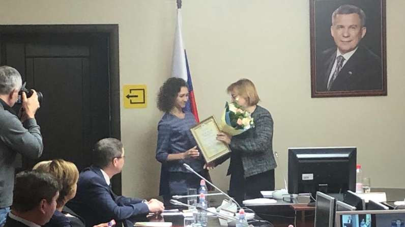 В конце коллегии за добросовестный и многолетний труд были отмечены сотрудники социальной сферы. В числе награждаемых была и наш социальный работник отделения надомного социального обслуживания КЦСОН «Наз» Гулия Рахматуллина. Ответственная и исполнительная, уравновешенная и умеющая найти индивидуальный подход любому клиенту Гулия Шакировна, проработавшая в своей должности 17 лет, была награждена Почетной грамотой МТЗиСЗ РТ.