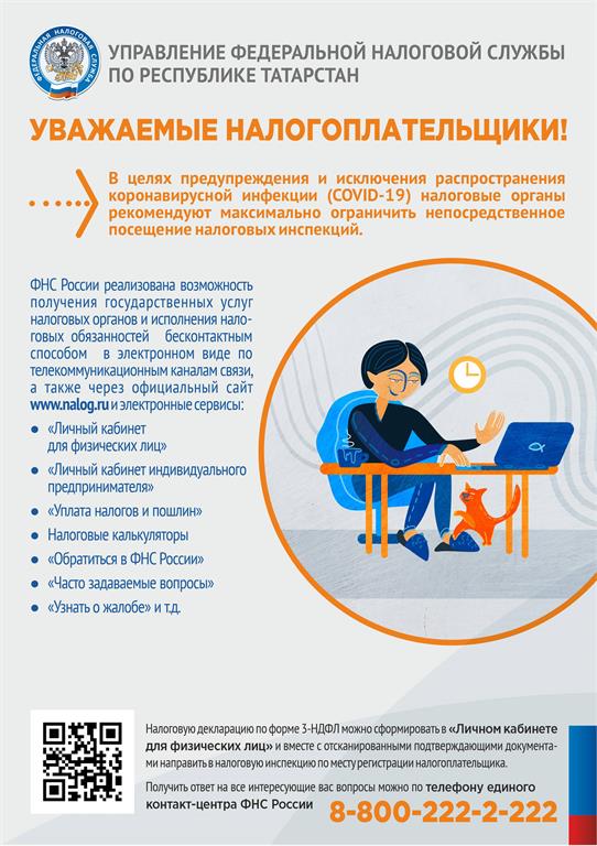 В целях предупреждения и исключения распространения коронавирусной инфекции (COVID-19) налоговые органы рекомендуют максимально ограничить непосредственное посещение налоговых инспекций.