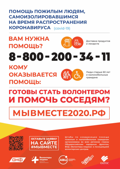 В настоящее время Общенациональная ассоциация ТОС совместно с Общероссийским Народным Фронтом реализуют проект #МыВместе. Этот проект позволит быстро находить тех, кто хочет помочь, и тех, кому эта помощь необходима.