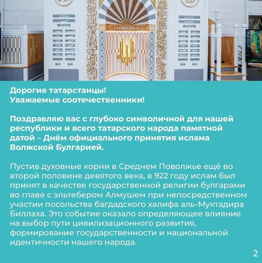 Обращение Президента Республики Татарстан Рустама Минниханова по случаю Дня официального принятия ислама Волжской Булгарией