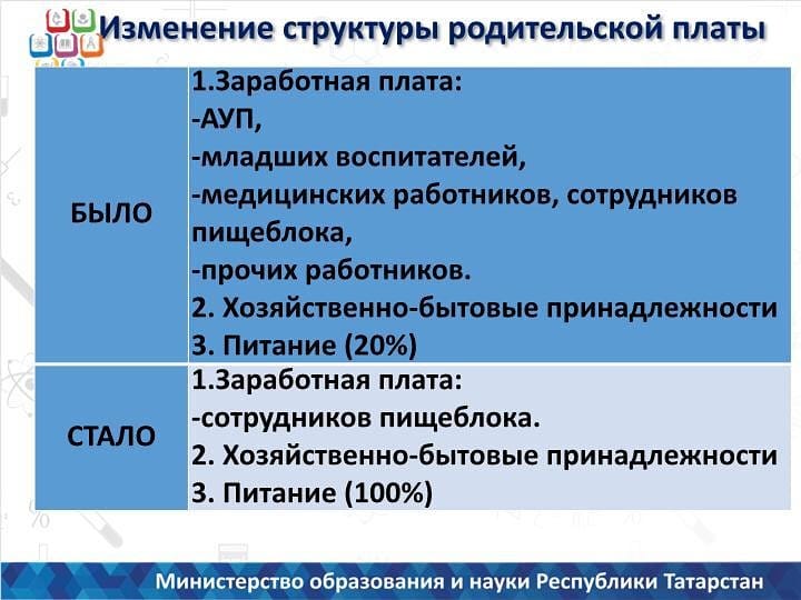 Все расходы, связанные со снижением размера постоянной платы, и в целом родительской платы, будут компенсироваться за счет консолидированного бюджета РТ.