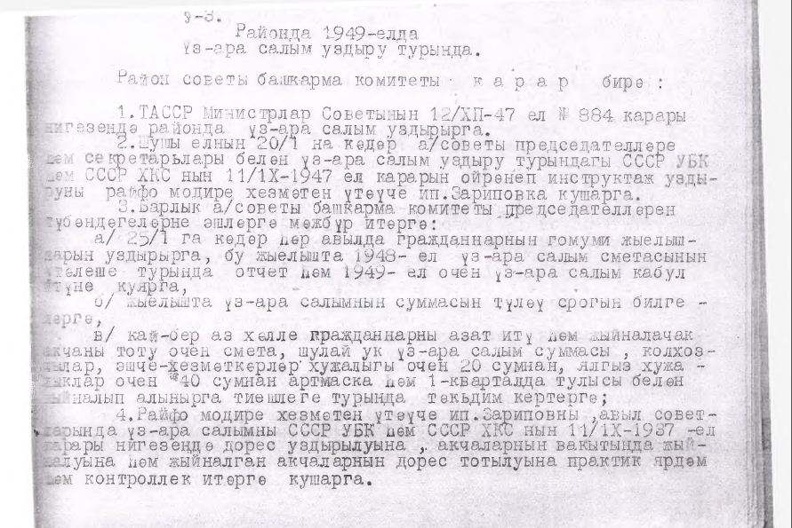 Выписка из протокола заседания Исполнительного комитета Балтасинского районного Совета депутатов трудящихся от 18.01.1949 №3