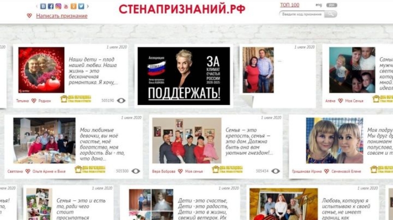 СТЕНАПРИЗНАНИЙ.РФ, при поддержке правительственных организаций регионов Российской Федерации, учреждают в эту честь ВСЕРОССИЙСКУЮ САМОИЗОЛЯЦИОННУЮ ПЕРЕКЛИЧКУ ДОМОВ: «ДОМСЕМЬИ, ЛЮБВИ И ВЕРНОСТИ!». Организаторы уверены, что: «Каждый дом России - дом семьи, любви и верности, где царят любовь, взаимопонимание и забота близких друг о друге, которой неминуемо хочется делиться в признаниях чувств на СТЕНАПРИЗНАНИЙ.РФ»!