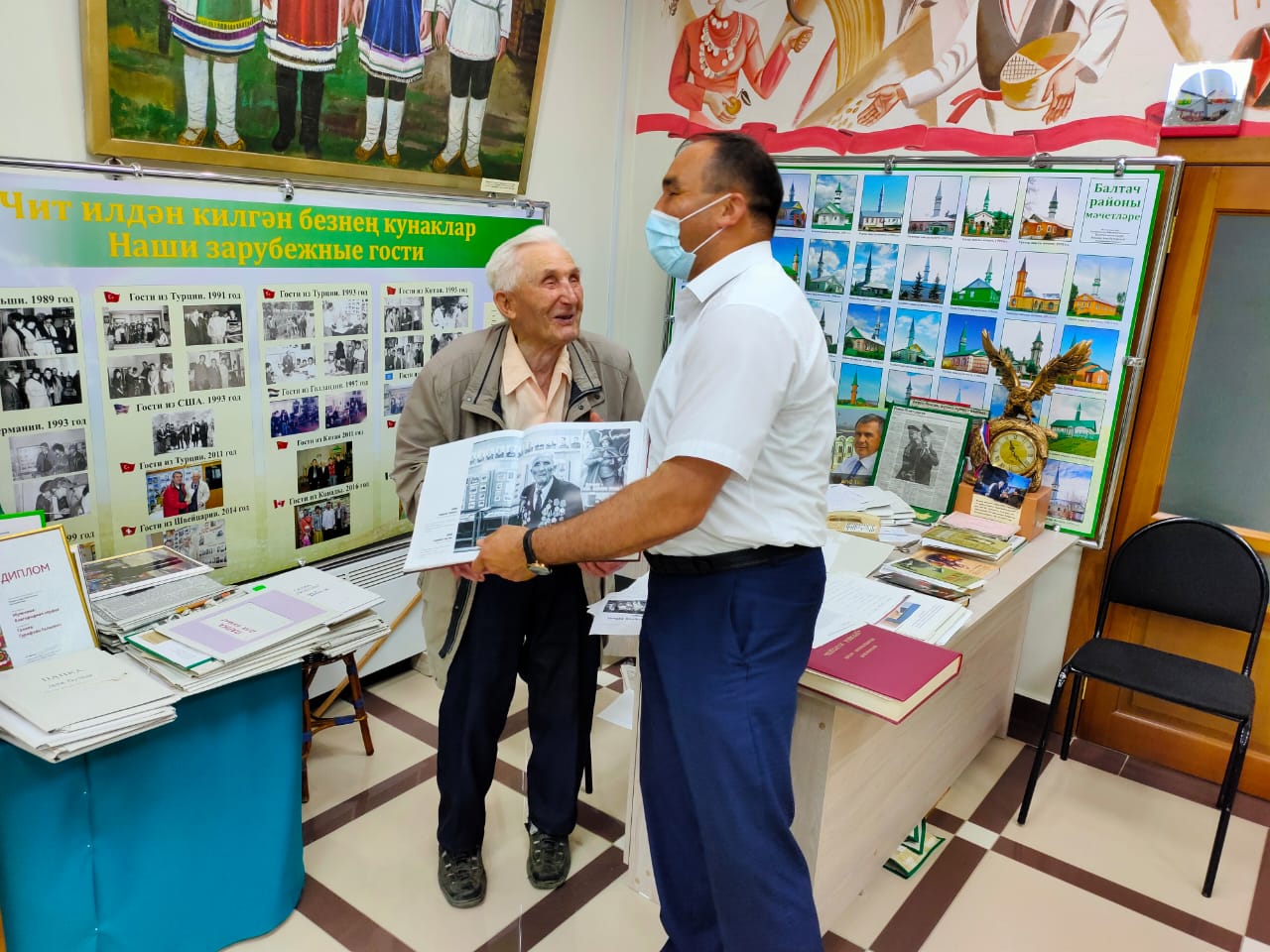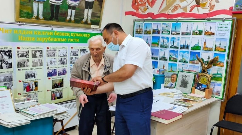 Руководитель Балтасинского районного исполнительного комитета Айдар Фоатович Хайрутдинов подарил директору музея «Дружба народов», ветерану Великой Отечественной войны Гарифзяну Галиевичу Галиеву книгу «Победа одна на всех» с портретами ветеранов войны и тыла.
