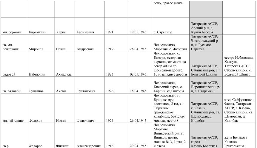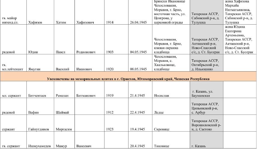 По архивным документам получена информация о месте рождения погибших воинов. Публикуем список уроженцев Татарстана.