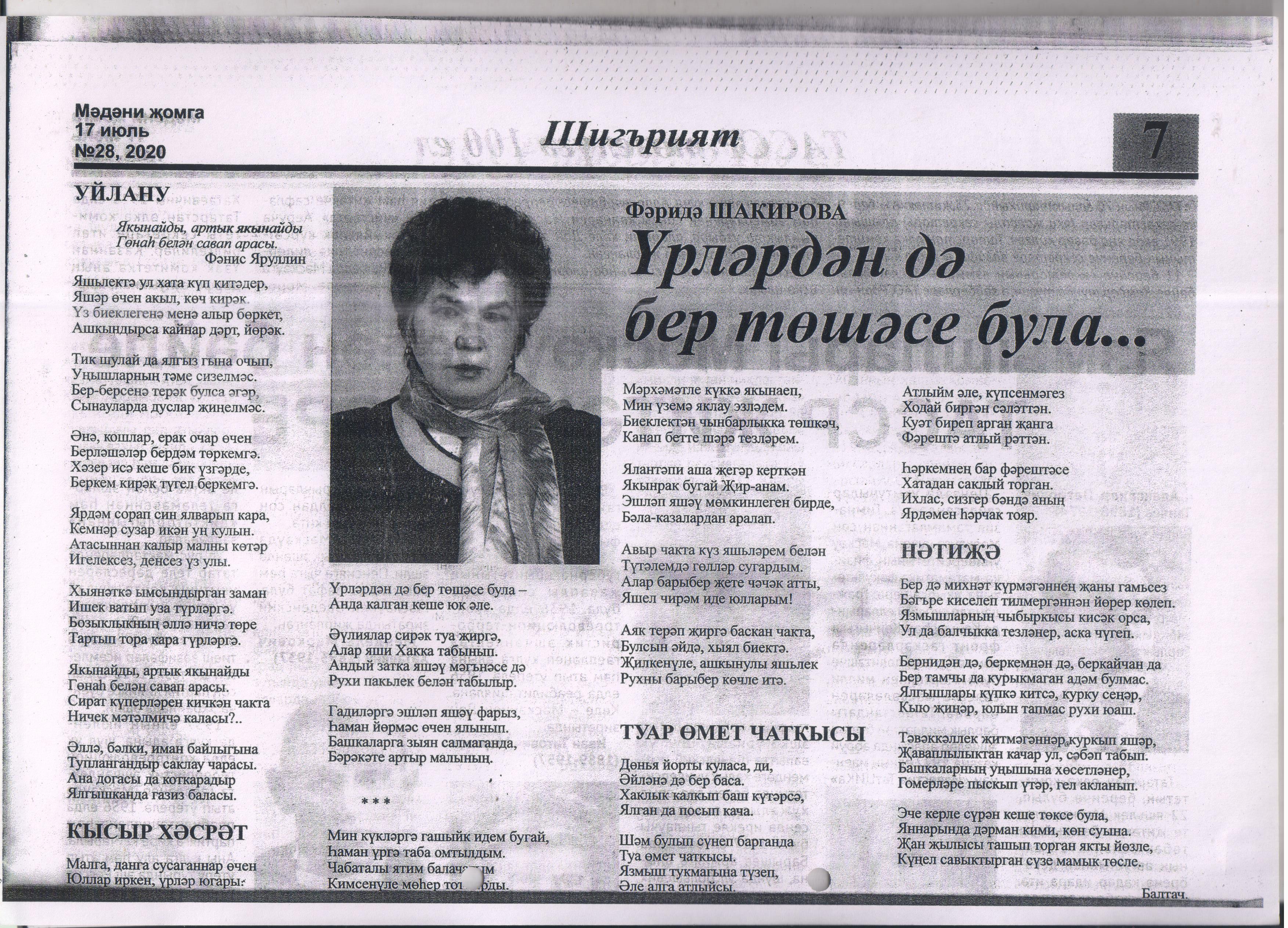 2. Фарида Шакирова. Шигърият. Мәдәни Җомга №28, 17.07.2020 г.