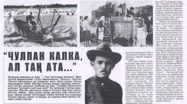 В 1921 году село, образованное молодыми семьями в период засухи и голода, было присвоено звание «Чулпан». Эта деревня находилась рядом с нынешней деревней Каенсар. Автор письма описывает историю родного села.