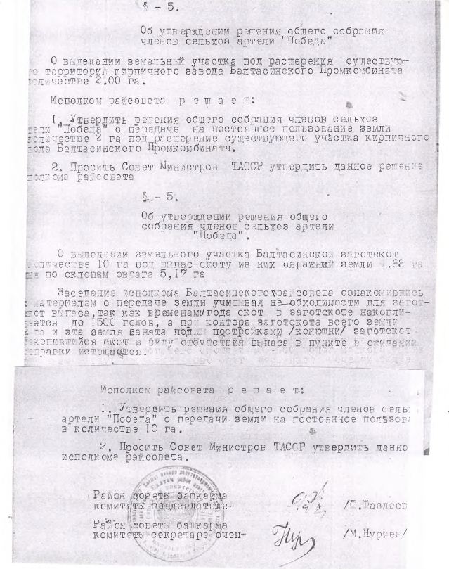 Выписка из протокола заседания исполнительного комитета Балтасинского районного Совета депутатов трудящихся от 26.05.1955 №19