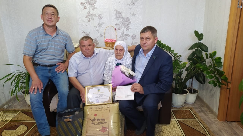 Юбиляр искренне обрадовалась персональному поздравлению Президента Российской Федерации Владимира Путина, Благодарственному письму и ценному подарку от имени главы Балтасинского муниципального района, подаркам с последнего места работы и сельского поселения.