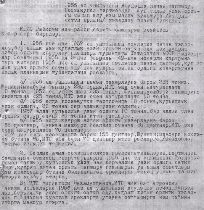 Выписка из протокола заседания исполнительного комитета Балтасинского районного Совета депутатов трудящихся от 21.02.1956 №9