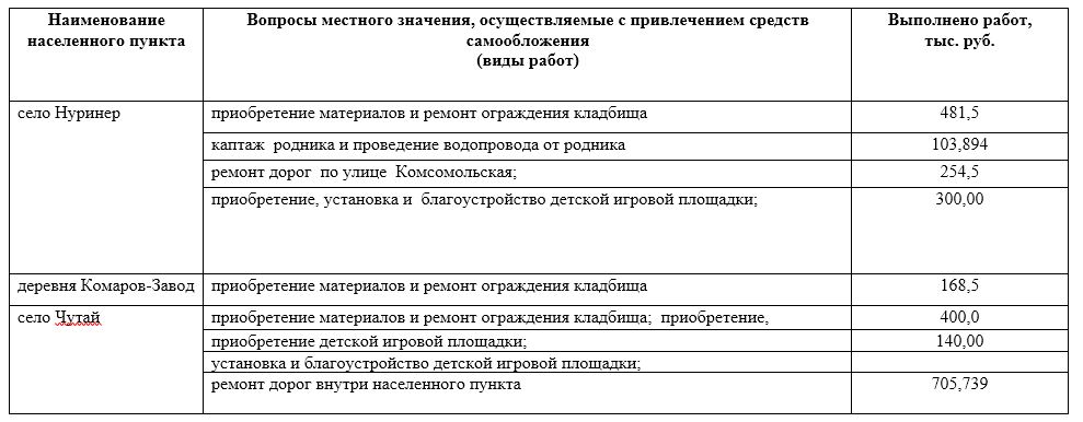 Информация по осуществлению программы самообложения граждан 2020 года в Нуринерском сельском поселении