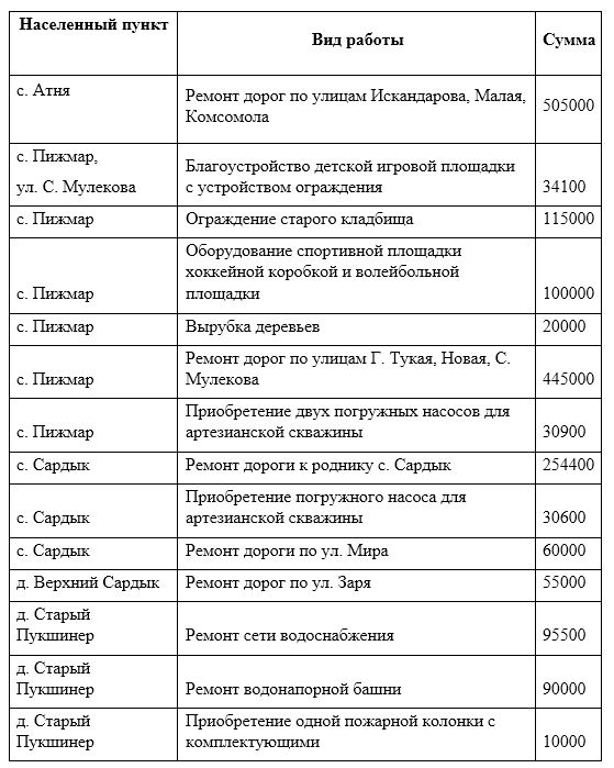Программа самообложения граждан 2020 года в Пижмарском сельском поселении