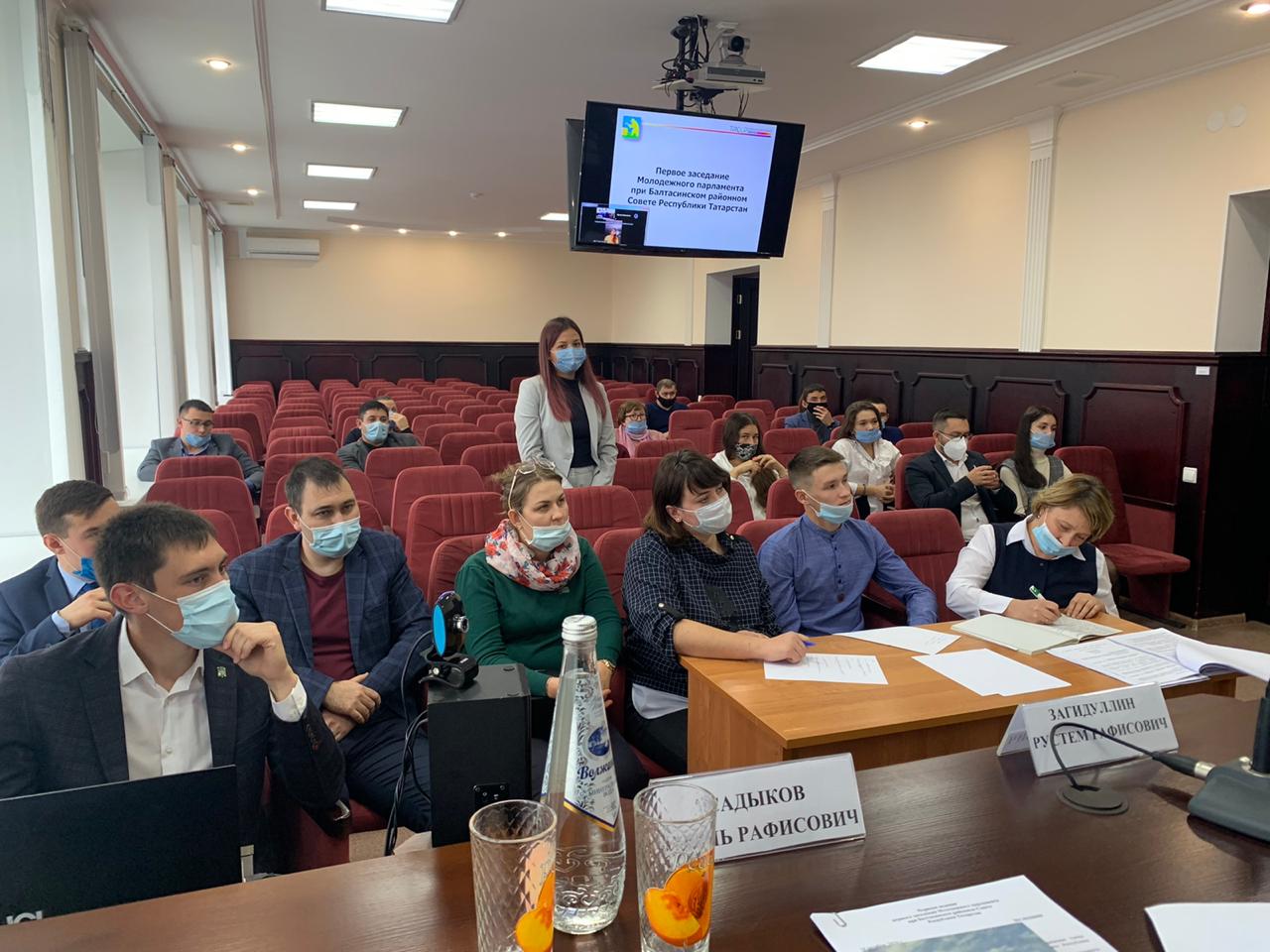 18 октября 2020 года состоялось первое заседание Молодежного парламента при Балтасинском районном Совете Республики Татарстан с участием членов Молодежного парламента. В заседании Молодежного парламента приняли участие руководитель Балтасинского районного исполнительного комитета Хайрутдинов Айдар Фоатович, начальник отдела по делам молодежи и спорту Балтасинского районного исполнительного комитета Загидуллин Рустам Рафисович и председатель Молодежного парламента при Государственном Совете Республики Татарстан Шимина Нина Константиновна.