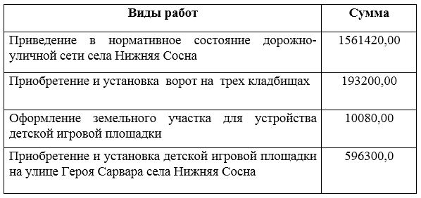 Информация по осуществлению программы самообложения граждан 2020 года в Сосновском сельском поселении