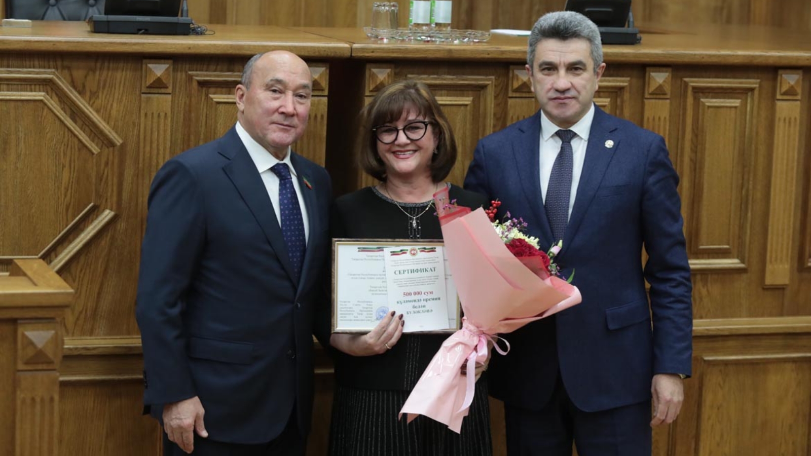 Сегодня в Государственном Совете РТ состоялось награждение победителей республиканского конкурса на лучшую практику преподавания родного языка (татарский, чувашский, удмуртский, марийский, мордовский) в муниципальных бюджетных общеобразовательных организациях республики Татарстан. В церемонии приняли участие председатель комиссии при Президенте Республики Татарстан по вопросам сохранения и развития татарского языка Марат Готович Ахметов и министр образования и науки Республики Татарстан Ильсур Гараевич Хадиуллин. Карадуганской гимназии имени Баки Зиятдинова и Нуринерской школе Балтасинского района был вручен грант в размере 500 тысяч рублей.