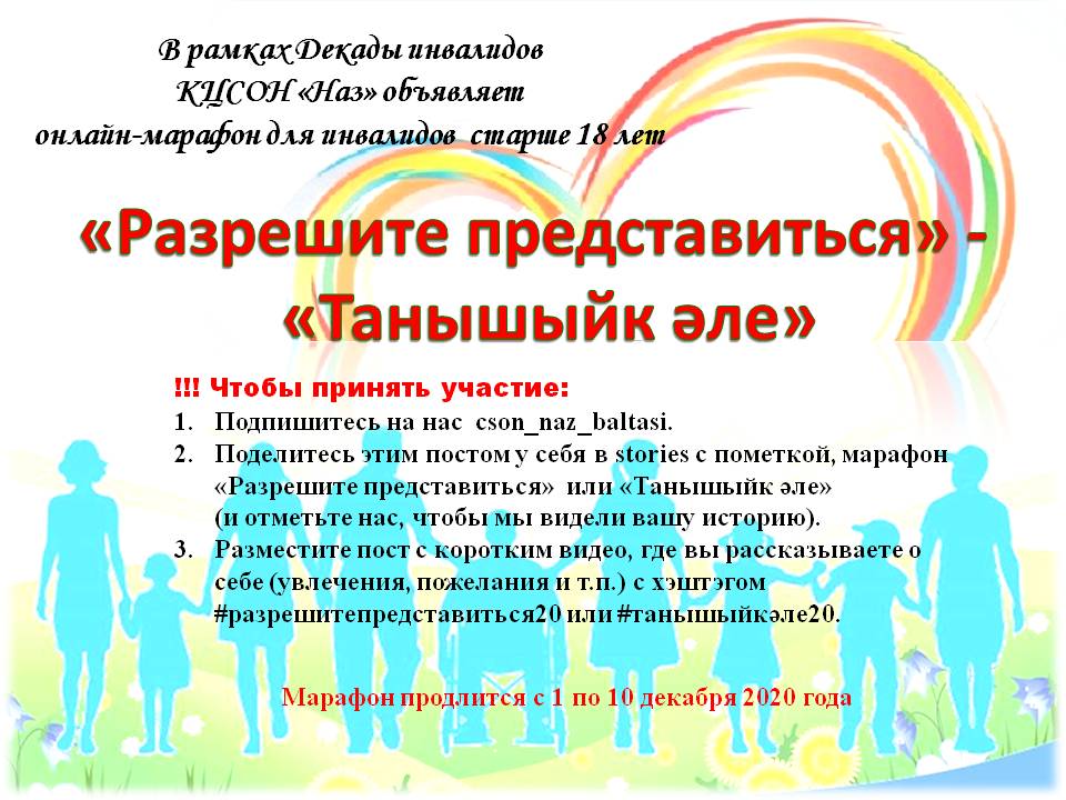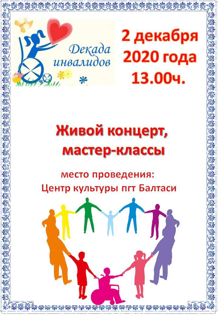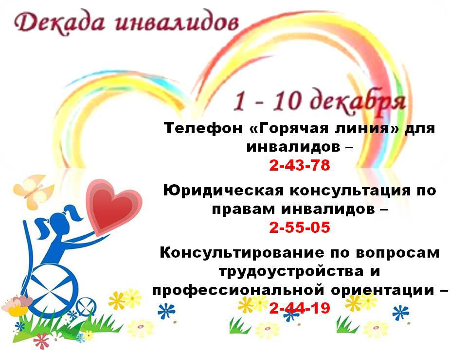 1 декабря стартует Декада инвалидов, приуроченная к Международному Дню инвалидов. В рамках декады для людей с ограниченными возможностями пройдут различные мероприятия: интеллектуальные и спортивные игры, онлайн-конкурсы, мастер-классы, живой концерт, онлайн-марафон.