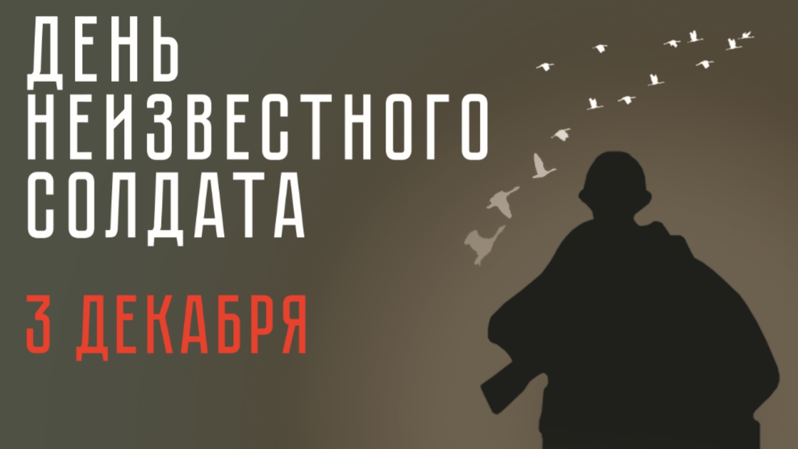 3 декабря – День Неизвестного солдата. Эта дата выбрана не случайно, ведь 3 декабря 1966 года, в день 25–летия разгрома немецких войск под Москвой, был принесён и захоронен у стен Московского Кремля прах неизвестного солдата. Этот день посвящен всем пропавшим без вести и безымянным воинам, отдавшим свою жизнь за нашу Родину и мирное небо над головой.