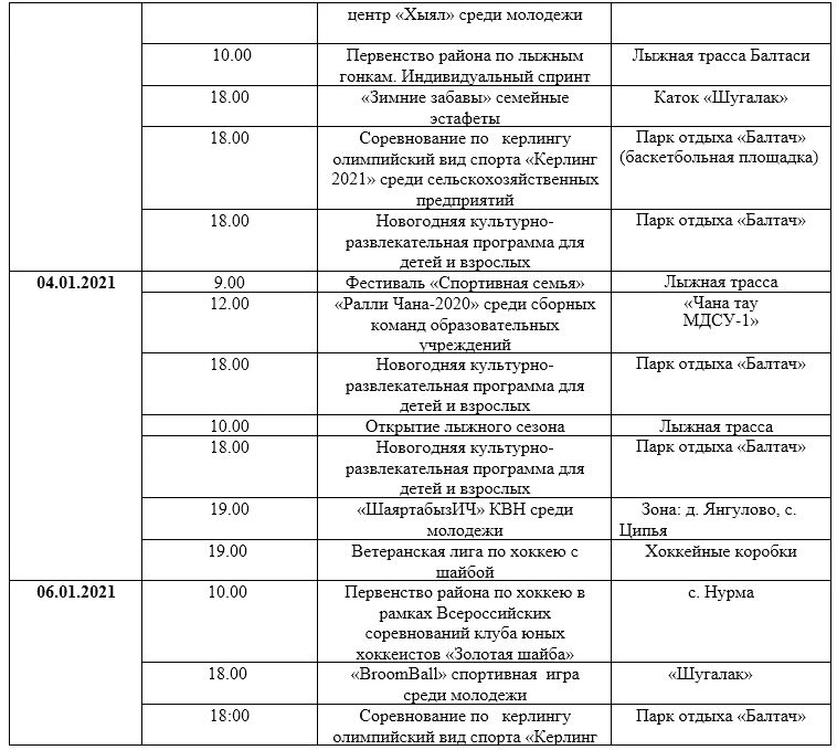 План мероприятий в Балтасинском муниципальном районе Республики Татарстан в период новогодних праздников и зимних каникул