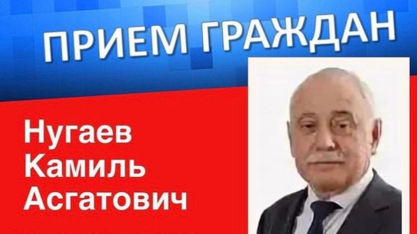 26 января депутат Государственного Совета Республики Татарстан Нугаев Камиль Асгатович проведёт личный прием граждан.