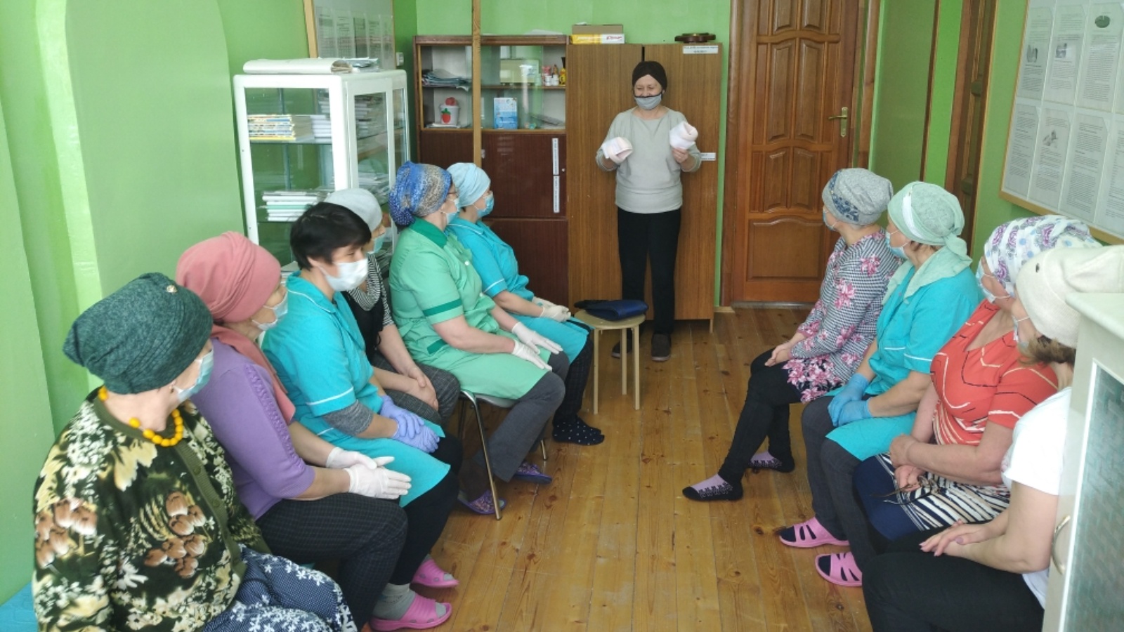 В рамках реализации инновационной технологии "Школы ухода" занятия продолжились в Нуринерском ФАП. Первое занятие для социальных работников и родственников прошло на тему: "Пожилой человек - особенности общения. "Школа ухода", как одна из инновационных технологий обучения навыкам общего ухода за пожилыми гражданами и инвалидами". Занятие провели специалисты КЦСОН "Наз".
