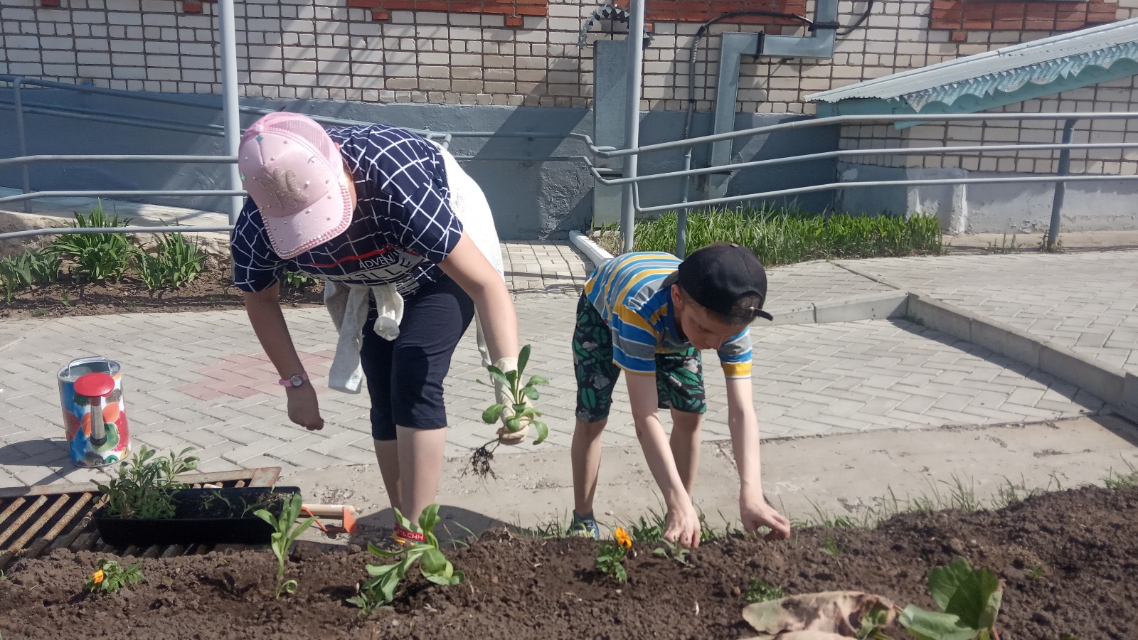 В рамках реализации мероприятий в трудовых кабинетах, молодые люди с большим интересом включились в работу: сажали и поливали цветы на газоне, рыхлили землю, познакомились с названиями и условиями ухода однолетних и многолетних цветов.