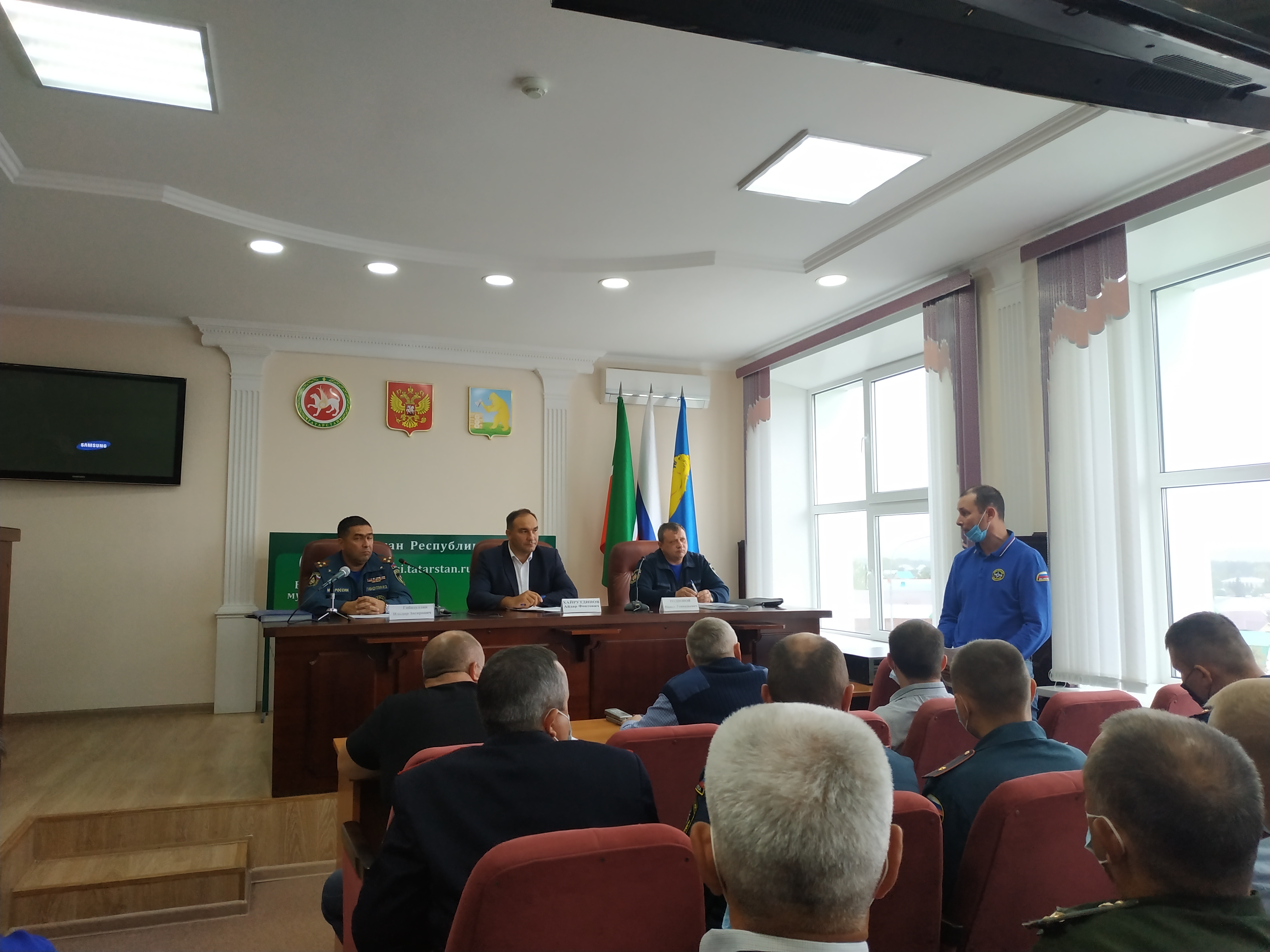 Сегодня, 3 сентября, под председательством руководителя Балтасинского районного исполнительного комитета Айдара Хайрутдинова состоялось совещание с участием заместителя начальника Главного управления МЧС России по Республике Татарстан Ильдара Гибадуллина, начальника отдела реализации полномочий в области гражданской обороны МЧС Республики Татарстан Павла Родионова и членов эвакуационной комиссии гражданской обороны Балтасинского района.