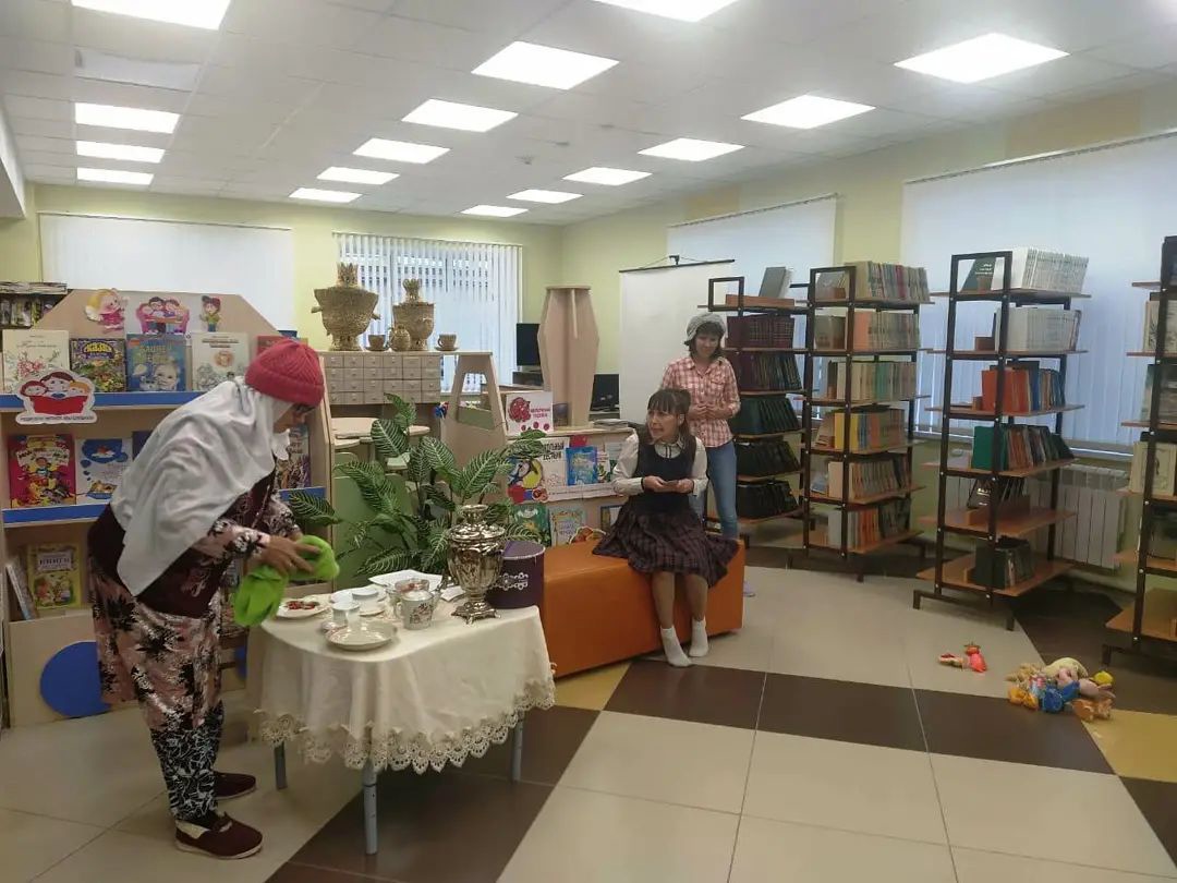 Праздничное мероприятие открыл спектакль "Кирлемән яңа дуслар эзли" с участием библиотекарей. Дети и сами показали свои способности, подарили бабушкам и дедушкам стихи, песни, поздравительные открытки. Оба поколения активно участвовали в различных играх.