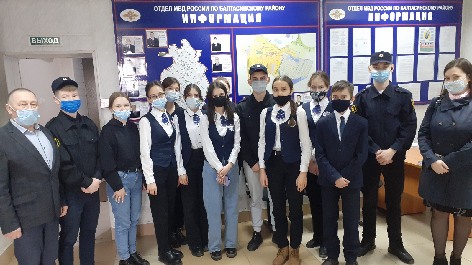 14.04.2022 года директор МБУ «Балтасинский центр «Форпост» Ф.Ш.Гилемзянов с сотрудниками «Форпост» МБОУ «Балтасинская гимназия» провел экскурсию в отделе полиции и музей ОМВД России по Балтасинскому району РТ, была проведена мероприятия в рамках «ознакомлением истории полиции» и проведена беседа по профилактике экстремизма и терроризма, в рамках акции на тему «Наркотикам нет!» #СКАЖИ ЖИЗНИ ДА, «Как прекрасен этот мир!» и «Сообщи, где торгуют смертью», беседа «Ребенок главный пассажир» по профилактике дорожно-транспортного травматизма, по профилактике преступлении и правонарушении и по профориентации в Балтасинском муниципальном районе.