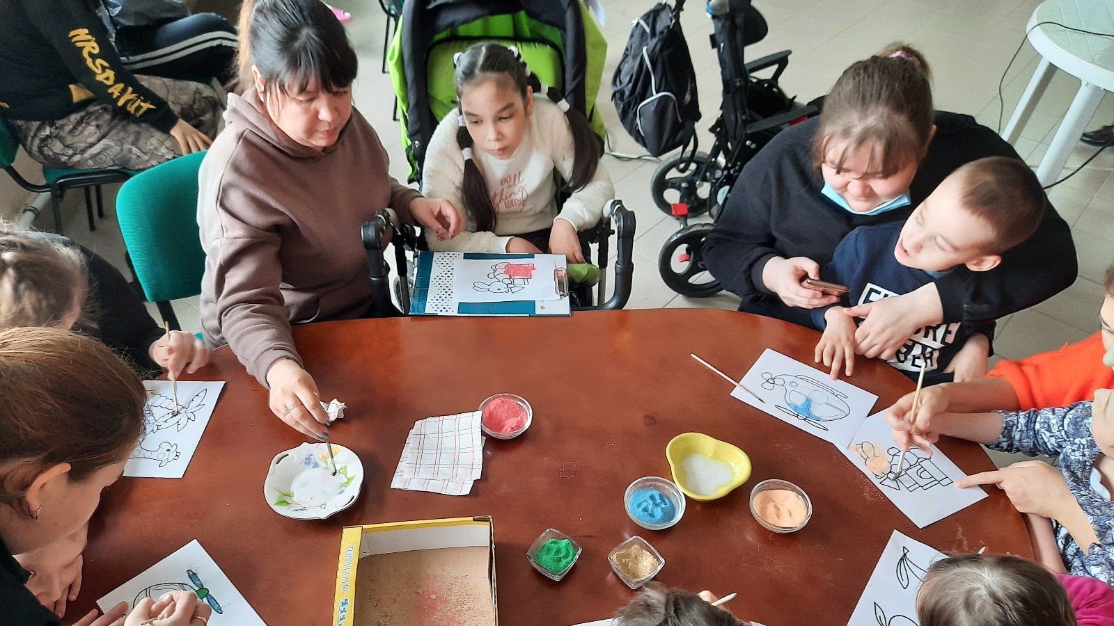 Сотрудники МБУ М(П)К “Факел” провели мероприятие для семей, воспитывающих детей с ограниченными возможностями здоровья, под названием” Веселая встреча". Для мам была проведена интеллектуальная игра, а для детей-мастер-класс. Дети сделали “Голубь мира” в честь Дня Победы.