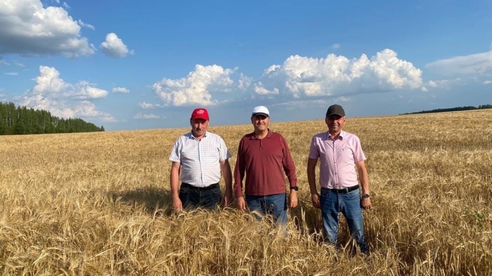 Глава района Рамиль Нотфуллин вместе с начальником управления сельского хозяйства и продовольствия Фирдавесом Набиуллиным ознакомился с ходом уборочной кампании 2022 года на полях хозяйств "Татарстан", "Активист", "Кама", "Кызыл Юл".