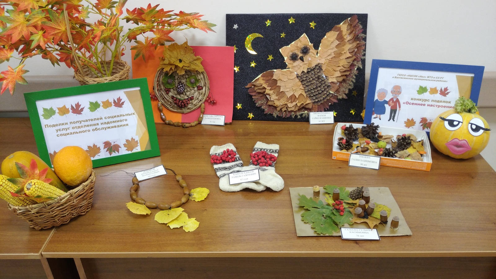 11 октября 2022 года в Балтасинском комплексном центре социального обслуживания «Наз» были подведены итоги конкурса поделок «Осеннее настроение» среди получателей социальных услуг. Получатели социальных услуг создали поделки, социальные работники помогли собрать материал для поделок.