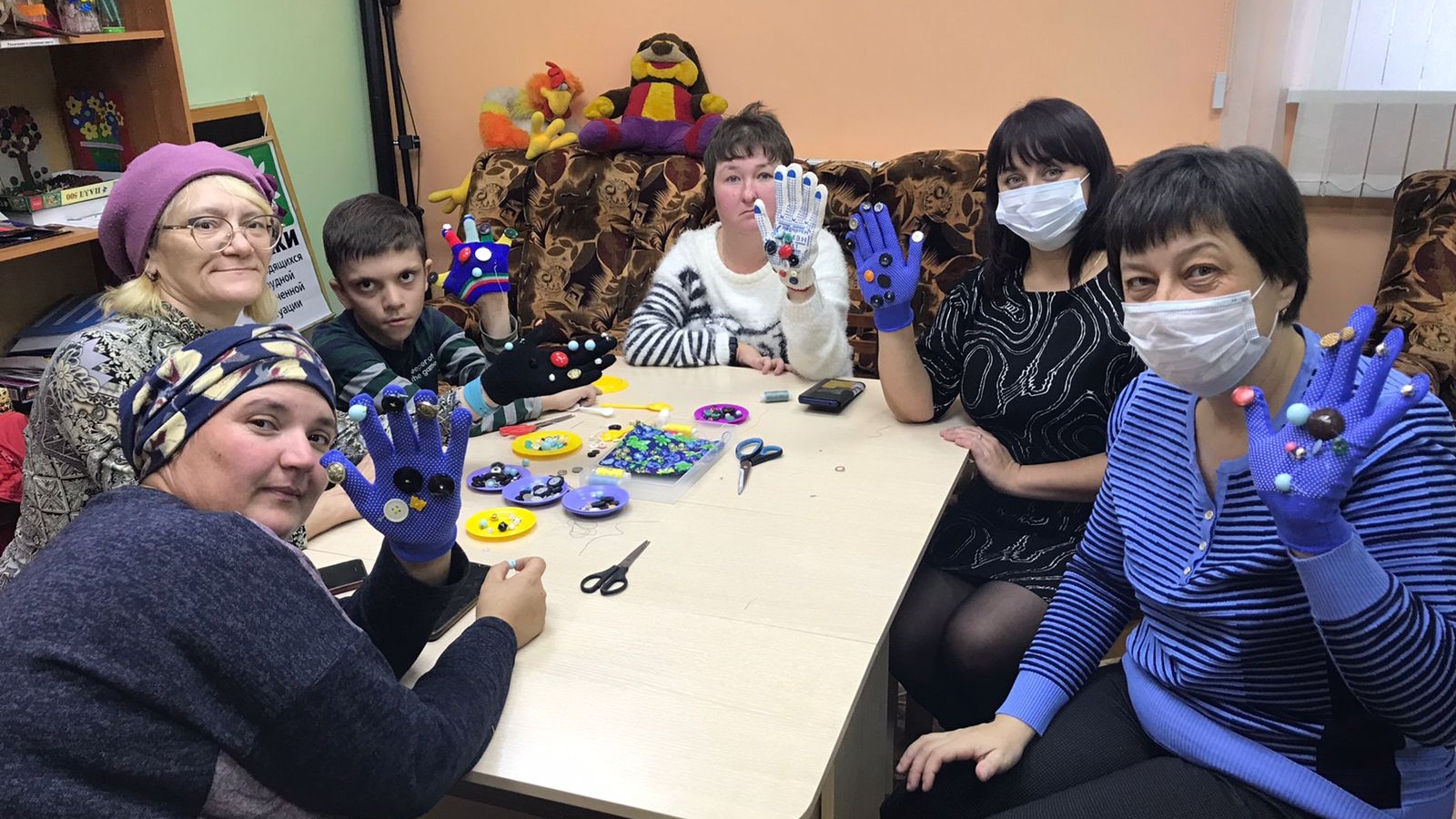 21 октября 2022 года в рамках группы дневного пребывания специалистами социальной помощи семье и детям комплексного центра социального обслуживания населения «Наз» было проведено адаптивное занятие в трудовом кабинете – Швейного дела. Занятие началось с проведения инструктажа по технике безопасности при работе с иглой и ножницами и ознакомления с необходимыми материалами и оборудованием для шитья. В ходе работы участники занятия приобрели навыки пришивания пуговиц с двумя и четырьмя отверстиями, больших и мелких размеров в различных техниках, а также пришиванию двухсторонних кнопочных пуговиц. Закрепив полученные на занятии знания, участникам было предложено создать массажные перчатки, с использованием различных размеров бус, пуговиц и бисера. Все с большим удовольствием выполнили задание, применив всю свою фантазию и смекалку, а полученный результата привел участников в восторг и восхищение. Изготовленные своими руками массажные перчатки будут подарены родным и близким.