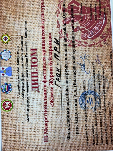 Фольклорный вокально-инструментальный ансамбль «Орчык» Балтасинского Центра культуры 12 ноября принимал участие в Межрегиональном фестивале кряшенской культуры «Җәмле Җураш буйларында”, который проходил 12 ноября в с.Старое Гришкино Менделеевского района. Жюри высоко оценило выступление ансамбля «Орчык». Руководитель ансамбля Асадуллина Айсылу Айратовна получила диплом лауреата 1 степени, а фольклорный вокально-инструментальный ансамбль «Орчык» стал обладателем Гран-при.