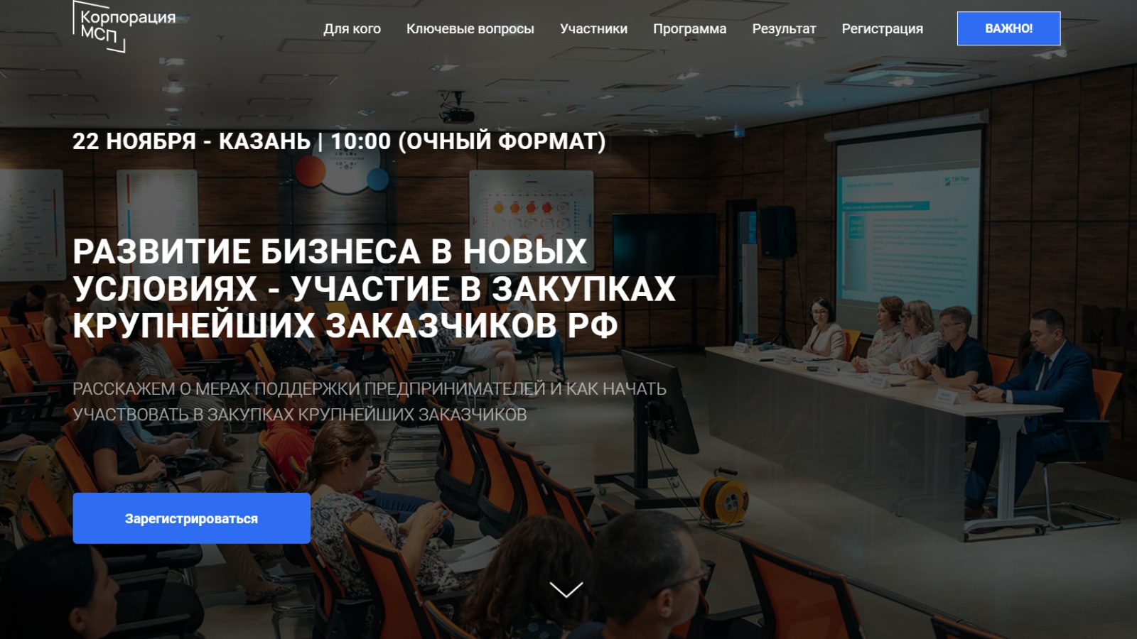 22 ноября 2022 года приглашаем вас на бесплатный семинар для предпринимателей региона – «Развитие бизнеса в новых условиях – участие в закупках крупнейших заказчиков РФ".