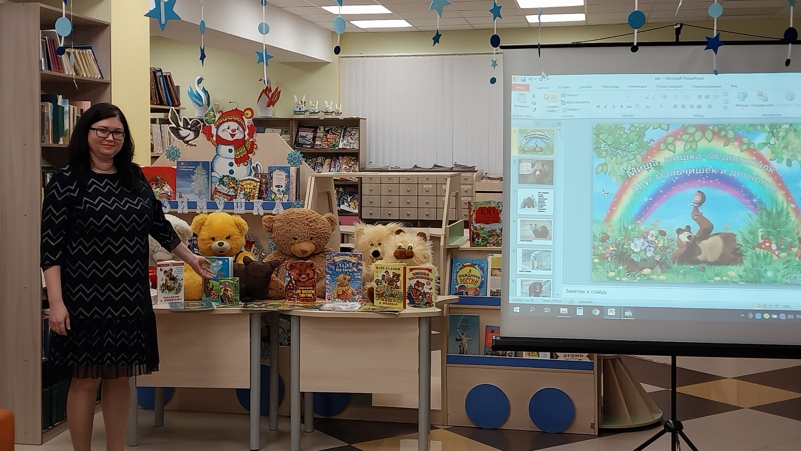 Учащимся были рассказаны интересные факты о медведях. Гости мероприятия посмотрели мультфильм и видеоролик, посвященный медведям, научились рисовать медведя.