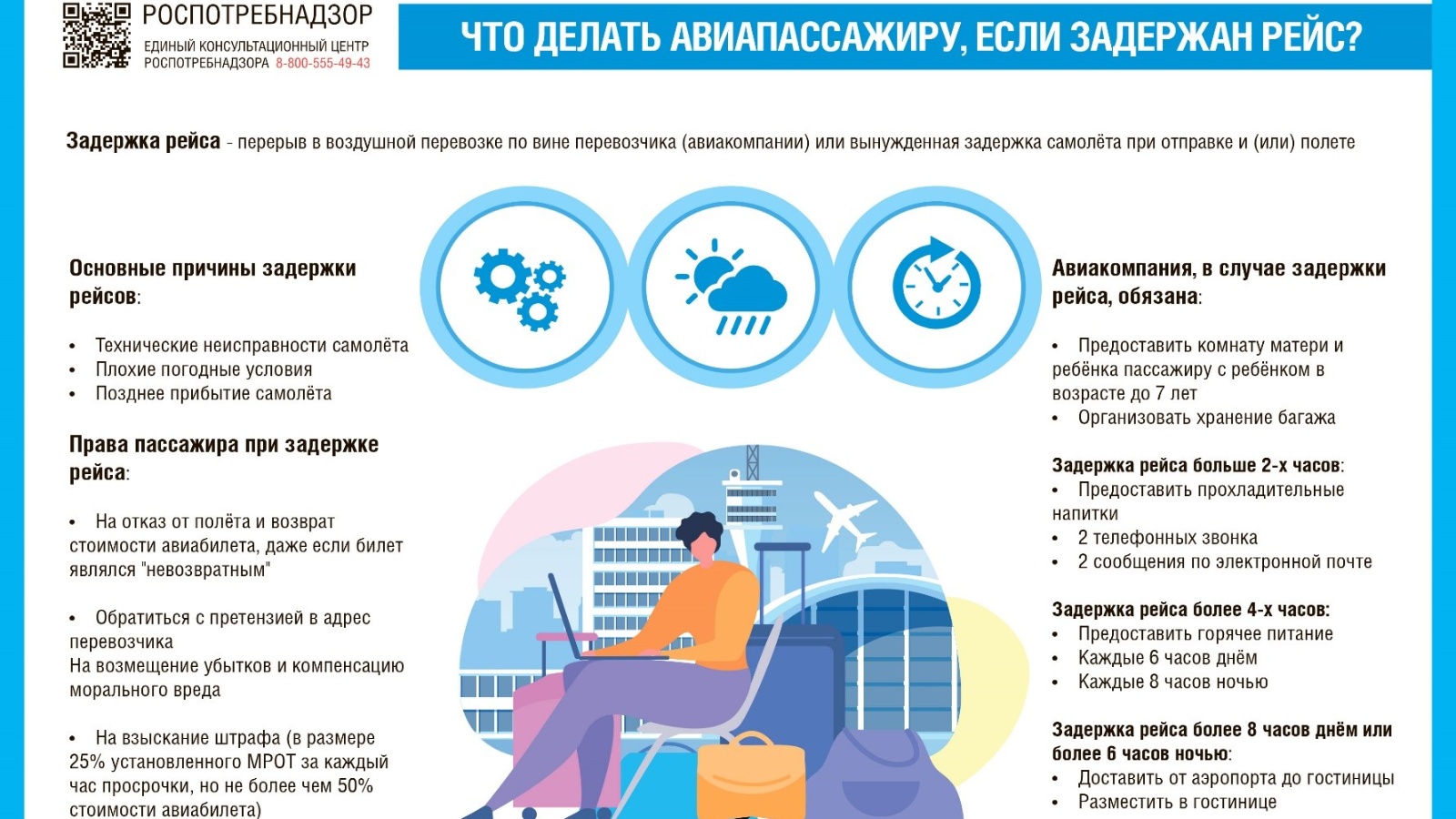 В связи с задержками рейсов из-за погодных условий в ряде российских городов Роспотребнадзор напоминает о том, какие права есть у авиапассажиров, попавших в эту ситуацию.