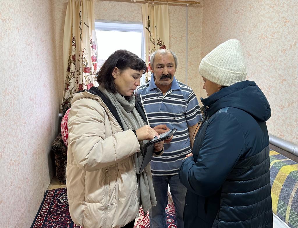 Начальник отдела социальной защиты Алсу Гатиятуллина, заведующий отделением надомного социального обслуживания Лилия Гарипова, специалист по социальной работе Гульнара Хабиберахманова проверили правильность заполнения документов по системе долговременного ухода, условия проживания одиноких пожилых граждан.