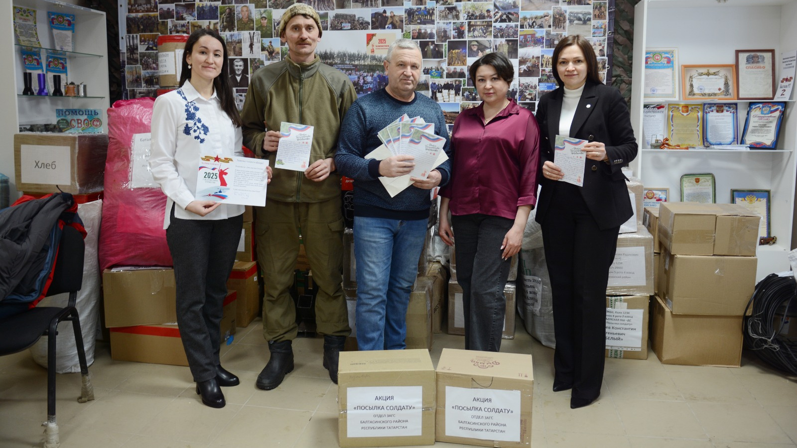 Сотрудники отдела ЗАГС Балтасинского района приняли участие в патриотической акции «Посылка солдату». Собранные посылки и поздравительные открытки от молодоженов, участвовавших в акции «Нашим героям», организованной Управлением ЗАГС Кабинета Министров Республики Татарстан совместно с органами ЗАГС республики, были переданы в Балтасинский филиал благотворительного фонда имени Героя России Дамира Исламова. В ближайшее время их планируют отправить военнослужащим.