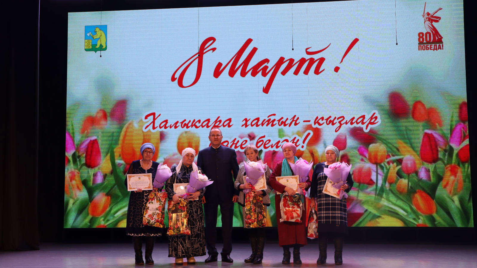 Сегодня, 6 марта, в районном центре культуры прошел благотворительный концерт, посвященный Международному женскому дню 8 марта под названием "Ак бәхет, якты мәхәббәт сезгә!". На мероприятии глава Балтасинского муниципального района Нутфуллин Рамиль Рашитович поздравил всех женщин с наступающим праздником. Праздничная программа продолжилась яркой песенно-танцевальной комедией Лейсан Аминовой "Я люблю тебя", подготовленной коллективом народного театра "Асылъяр" при Сосновском Доме культуры.