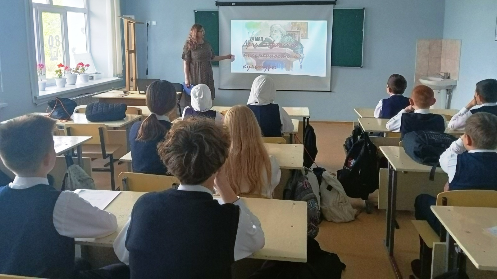 В преддверии праздника, 22 мая сотрудники Балтасинской Центральной детской библиотеки в Балтасинской гимназии провели информационный час “Лишь слову жизни дана”. Участники мероприятия - учащиеся 6-А класса-заслушали много информации по истории славянской письменности, вместе решили кроссворд.