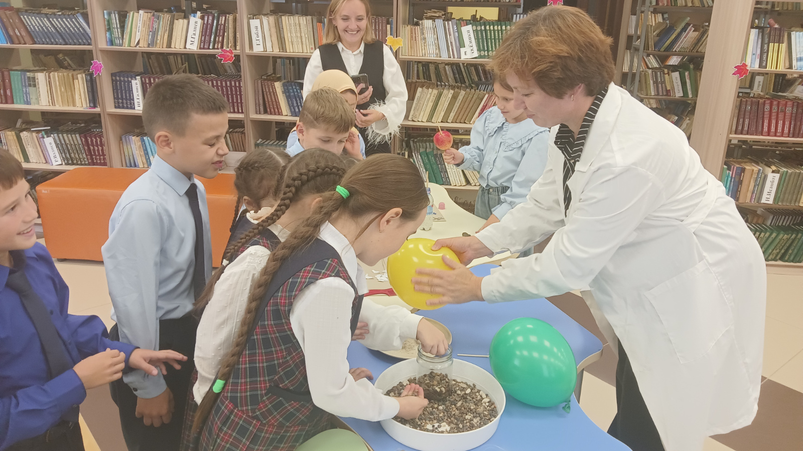 На познавательном уроке учащиеся 2–В класса Балтасинской средней школы рассмотрели различные эксперименты библиотекаря, поделились своими знаниями и сами попробовали эксперименты.