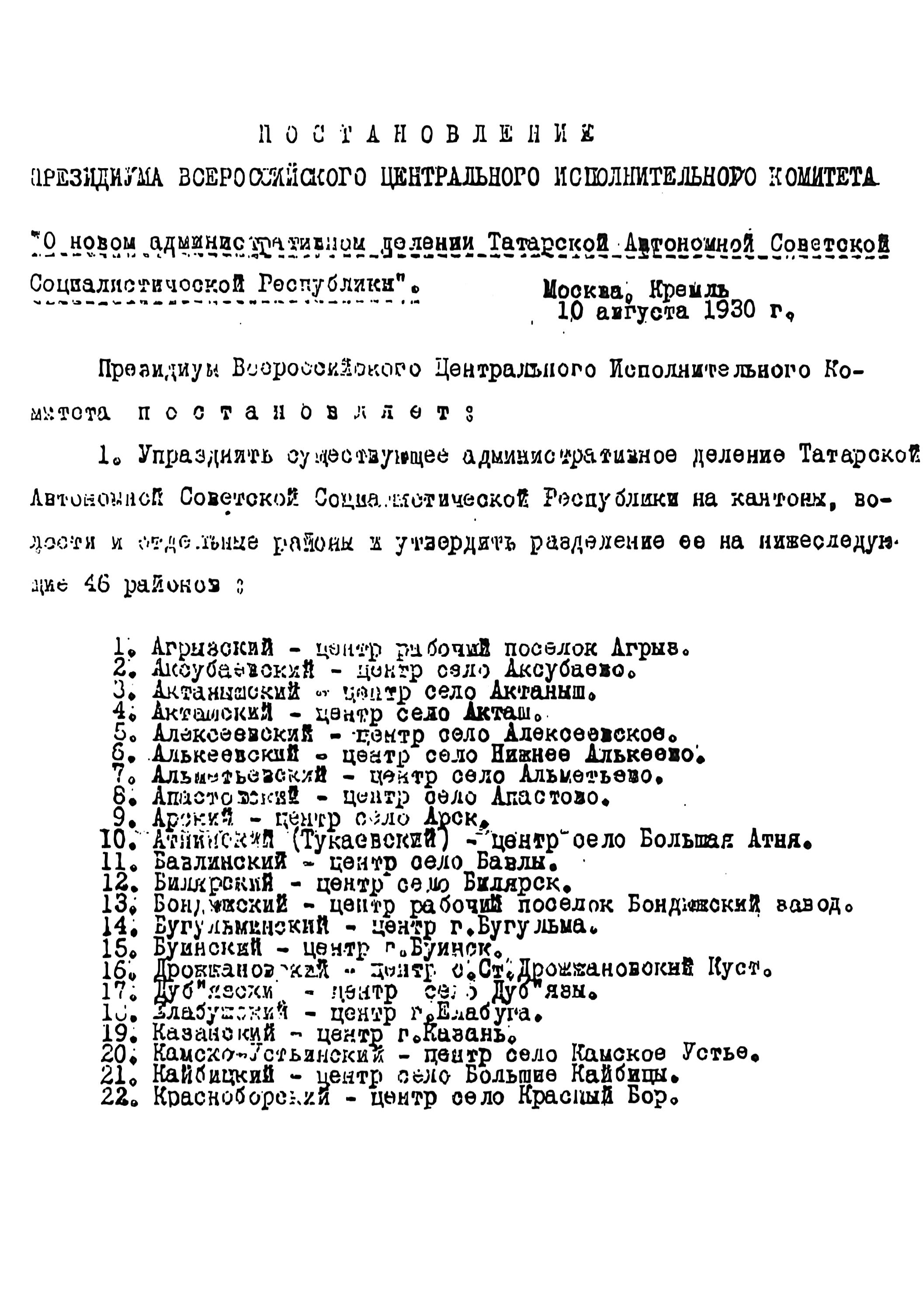 Документы - основания об образовании Балтасинского (Тюнтерского) района из фонда личного происхождения  Мухаметзянова Магсума Абдулловича