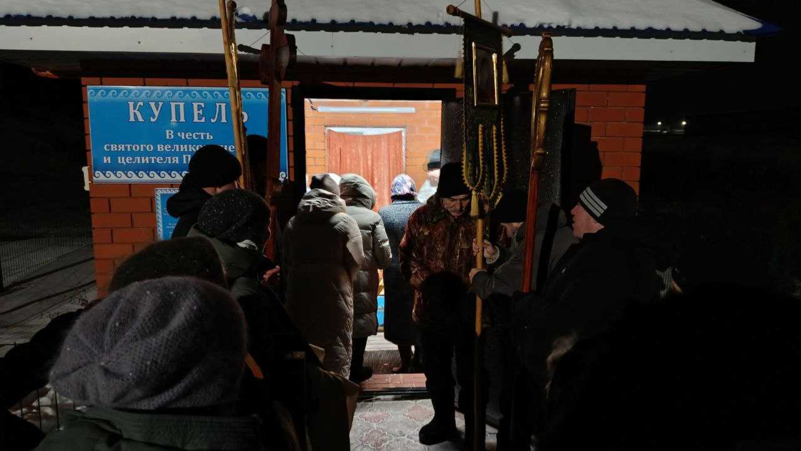 В ночь с 18 на 19 января прошла служба в храме с.М.Лызи, после полуночи крестный ход к купели. Батюшка освятил воду и начались купания.