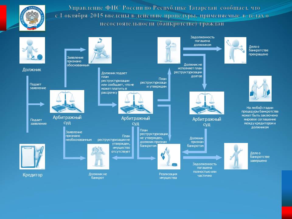 Управление ФНС России по Республике Татарстан сообщает, что с 1 октября 2015 введены в действие процедуры, применяемые в делах о несостоятельности (банкротстве) граждан